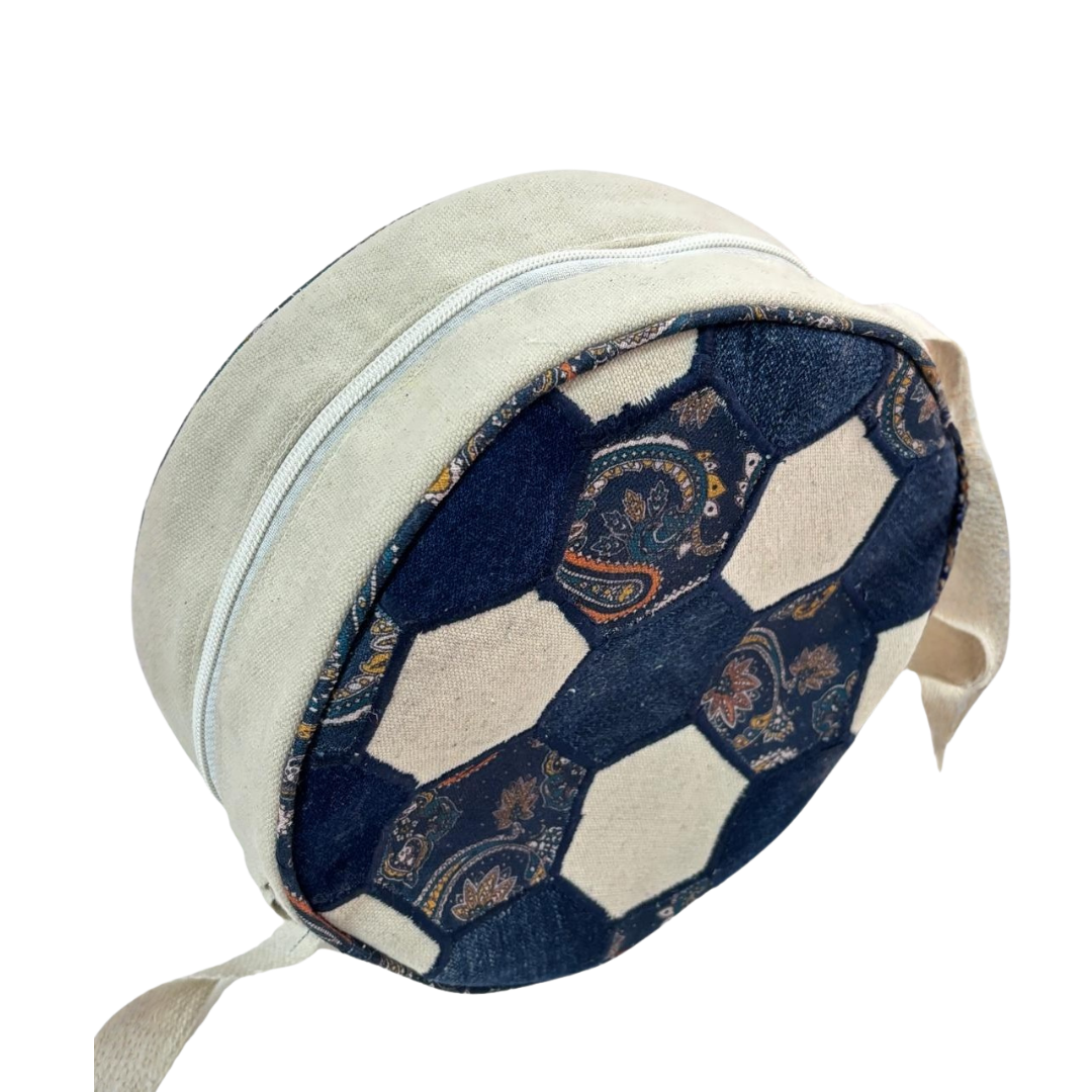 The Canvas Football Inspired Sling Bag is a sustainable canvas sling bag designed for conscious fashion lovers. Inspired by the iconic football hexagon pattern, this handcrafted canvas football inspired sling bag combines bold design, durability, and ethical craftsmanship by Label Purnkuti.