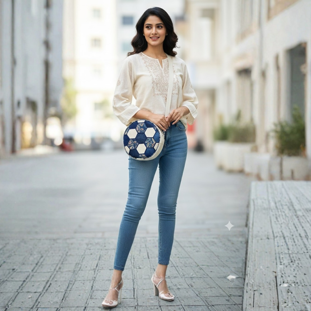 The football-inspired hexagon design makes this sling bag a conversation starter. Whether paired with ethnic wear, casual outfits, or travel looks, the handcrafted embroidery adds a bold yet elegant touch. The compact design allows you to stay hands-free while carrying all daily essentials comfortably.